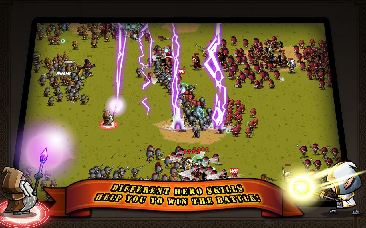 Gra przypomina trochę te znane na komputer czyli wybiera się typ, czy strzelający czy atakujący bezpiśrednio, więc tanki i dpsy... A jednocześnie ma się efekty, złoto w nagrodę, a za to można żywotność i siłę swoich wojsk levelować. No po prostu jak dla mnie genialna prosta, przyjemna gierka :)